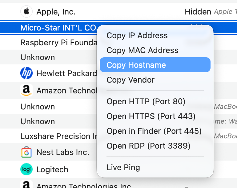 - Copy IP Address - Copy just the IP (e.g., 192.168.1.50)
