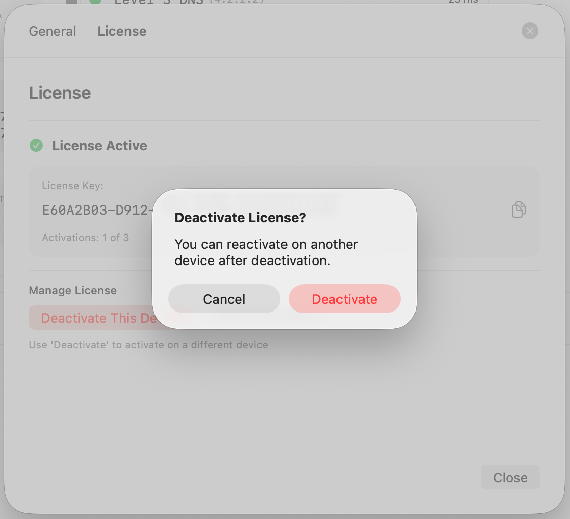 Important: Deactivation frees up an activation slot but removes access on the current device.