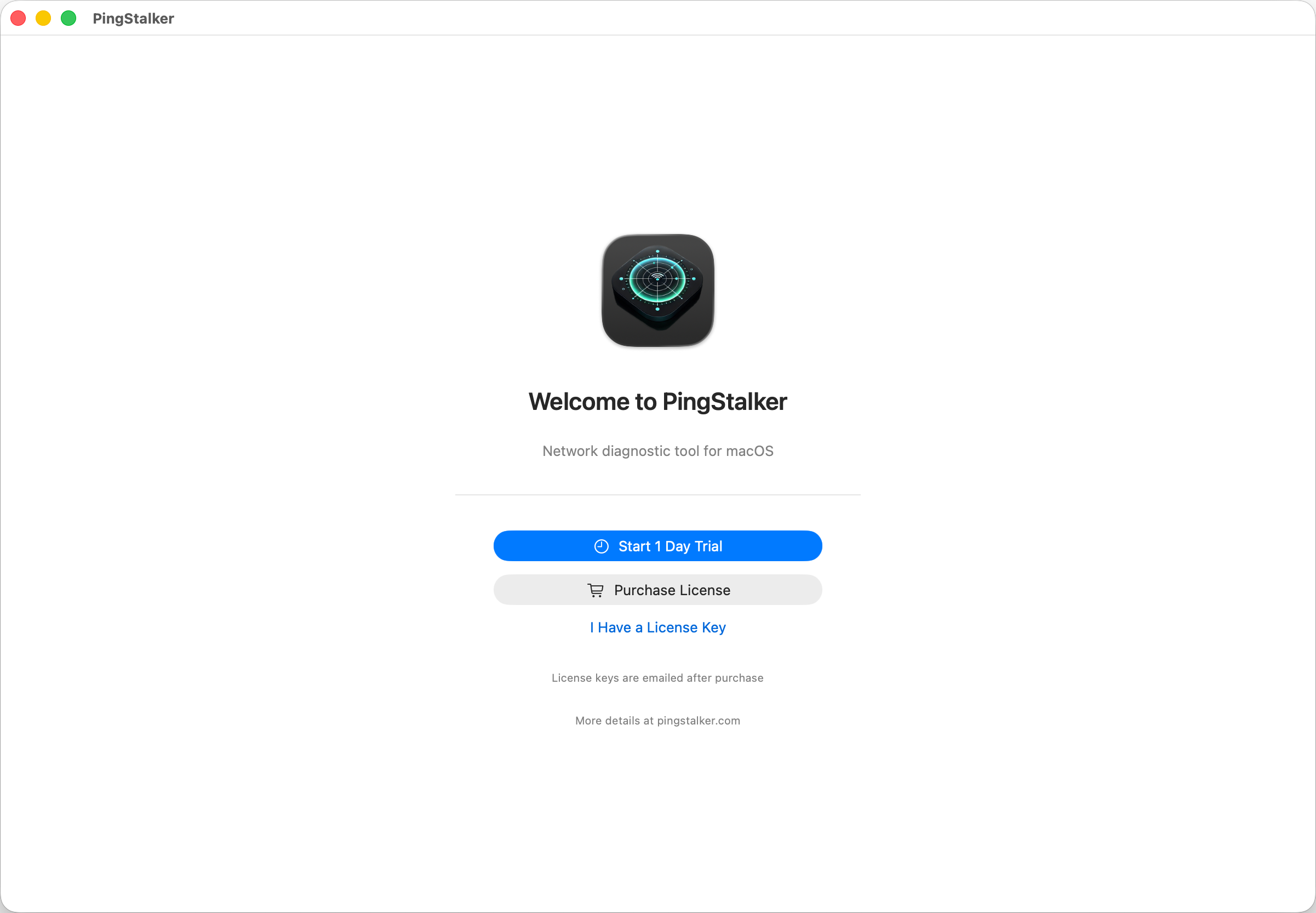 Once your trial or license is active, you're ready to explore PingStalker's features. Continue to Toolbar to learn about the main interface, or jump to Menu Bar to see all available commands.