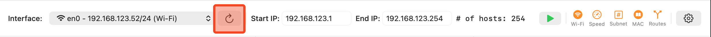 Click the circular arrow button to refresh the interface list. This is useful when: